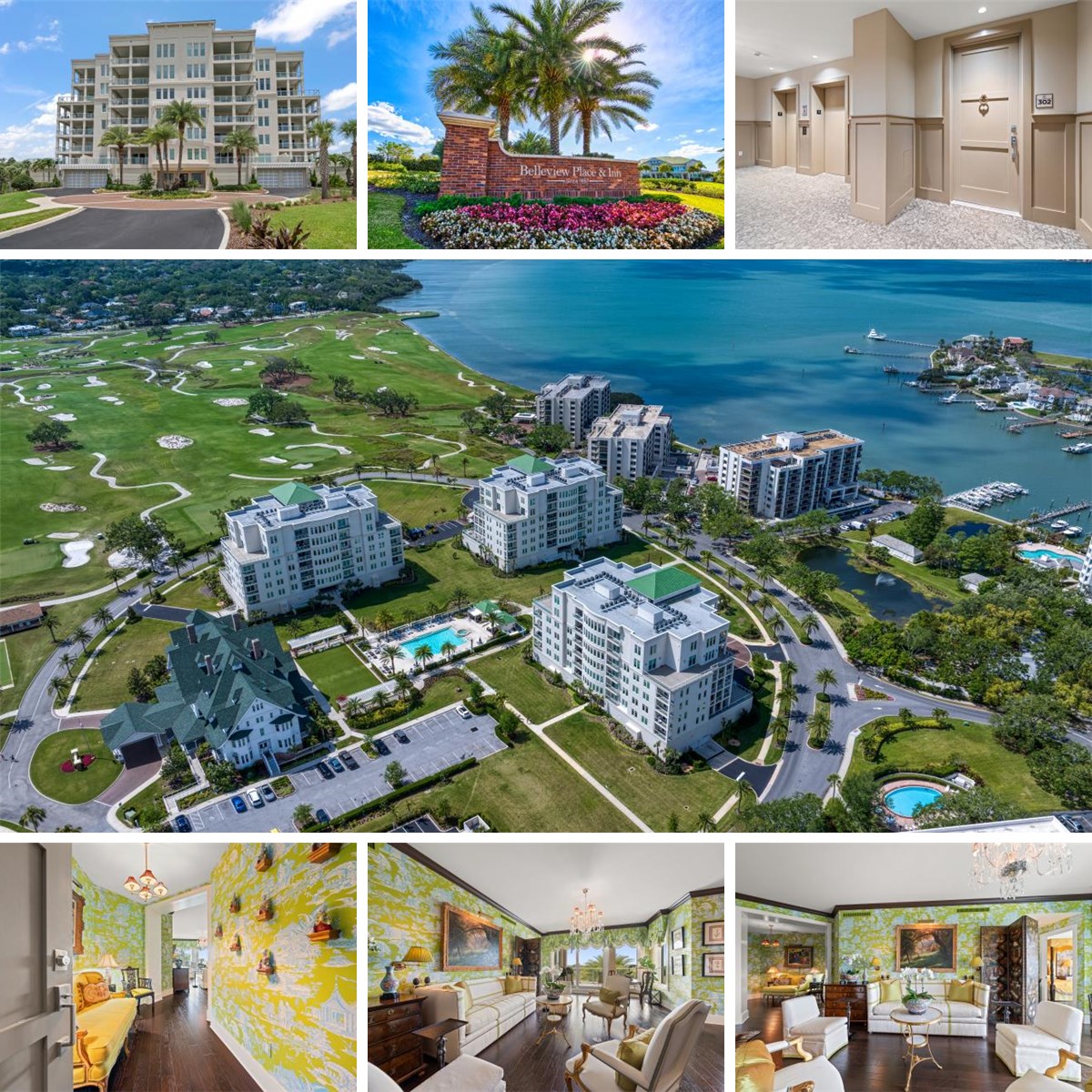 Behind the gates of the prestigious Belleair Country Club, within the elegant Residences at Belleview Place, a residence of timeless beauty and quiet sophistication awaits. From the moment you enter, the home unfolds like a scene from a classic European estate—striking formal rooms bathed in natural light where lush greens and soft ivory tones create an unforgettable backdrop of refined glamour. Rich dark trim, wide arched openings, and gleaming wood floors lend architectural drama and warmth, setting the stage for both gracious entertaining and peaceful everyday living. The living spaces flow effortlessly to a private wrap-around balcony where sweeping views of the golf course and the shimmering Intracoastal create a breathtaking setting for morning coffee or tranquil evenings beneath the Florida sky. The kitchen is equally impressive, offering generous counter space, elegant pendant lighting, stainless-steel appliances, and a gas cooktop, all complemented by an adjacent dining room adorned with stunning custom built-ins. The primary suite is a serene retreat filled with natural light and captivating views right from the bed, complete with two closets featuring custom built-ins. Its beautifully appointed ensuite bath includes a walk-in shower, separate water closet, and abundant storage. An additional bedroom and bath are thoughtfully designed to offer comfort and privacy for guests. Additional features of this home include a two-car garage and access to the historic Belleview Inn’s sparkling pool and fitness facilities. Rarely does a residence combine museum-quality detailing with such warmth and livability—an extraordinary opportunity to own a home rich in old-world charm and sophisticated design in one of Belleair’s most coveted settings.